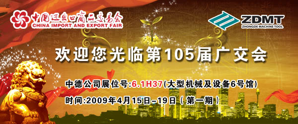 中德機(jī)床將參加第105屆春季廣交會(huì),具體時(shí)間和地點(diǎn)是廣交會(huì)一期,4月15—4月19日,琶洲館大型設(shè)備及機(jī)械展區(qū)(6號(hào)館),展位號(hào) 6.1H37。歡迎各位新老客戶光臨。