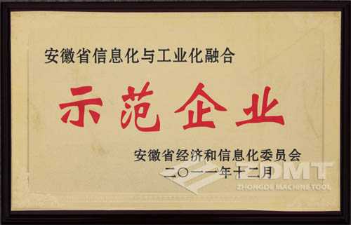 中德機床獲安徽省“信息化與工業(yè)化融合示范企業(yè)”稱號